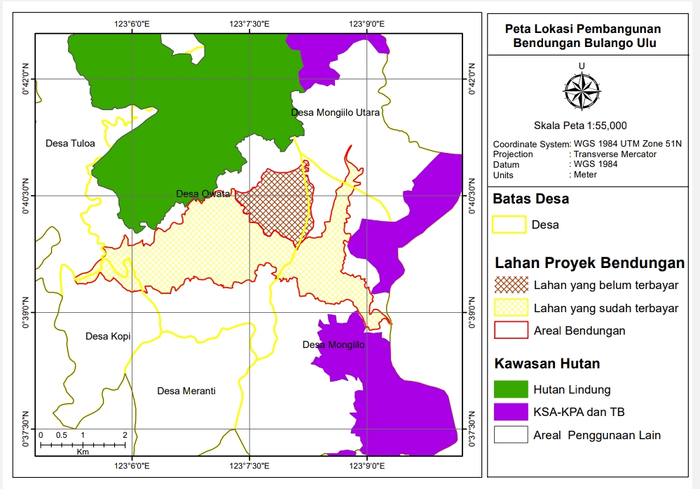 Anggota JAPESDA, Rival Dako, menjelaskan bahwa secara status penunjukan kawasan, lokasi pembangunan Bendungan Bulango Ulu berada di Area Penggunaan Lain (APL), yakni lahan di luar kawasan hutan yang dapat dimanfaatkan untuk berbagai peruntukan seperti permukiman, perkebunan, pertanian, maupun infrastruktur sesuai rencana tata ruang wilayah. Namun demikian, area yang dimanfaatkan untuk pembangunan bendungan tersebut berada sangat dekat dengan kawasan hutan lindung dan Taman Nasional Bogani Nani Wartabone, yang dikenal sebagai habitat berbagai satwa endemik.